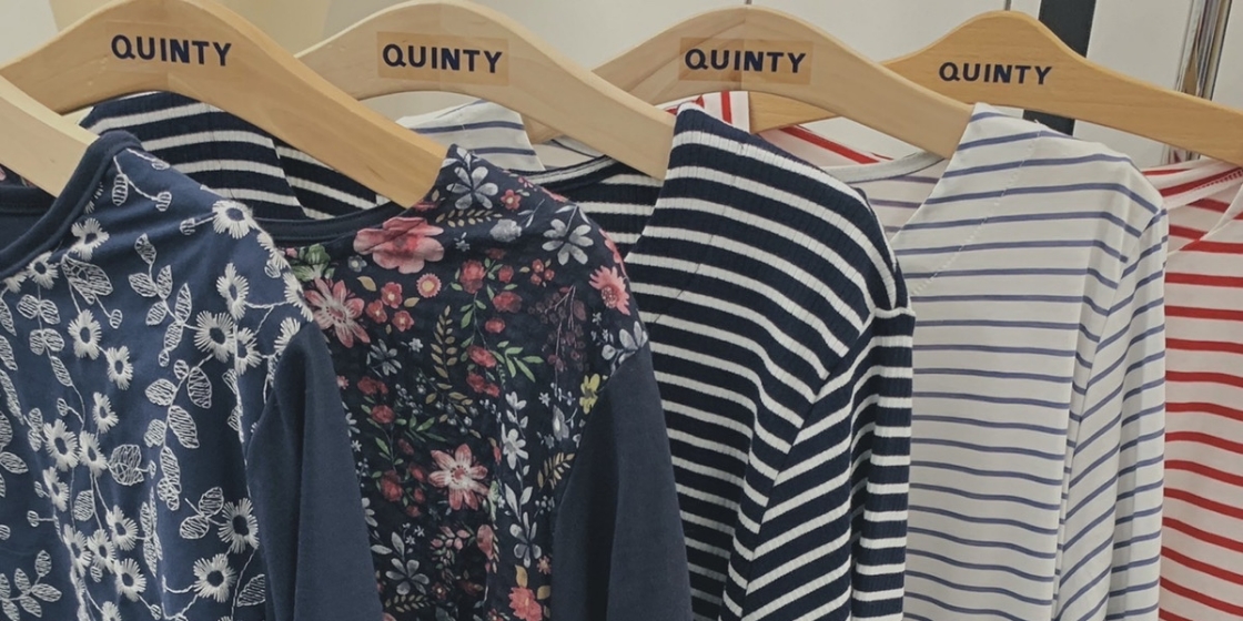 宮崎市の中心地、四季通りに佇む可愛いお店です。真っ白な壁に紺色のQUINTYの葉っぱのマークが目印です。明るい雰囲気の店内にはカジュアルからフォーマルまで、品質、デザイン、着心地にこだわった商品を数多く取り揃えております。明るく楽しいおしゃれ大好き店長が、小物使いも楽しく、多種多彩なコーディネートを提案させていただきます。皆様のご来店を笑顔でお待ちしています。